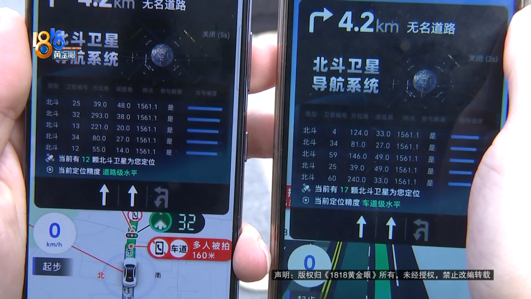 小刘:手机导航,它跟信号没关系。就是手机导航有个GPS信号,我在车外是能搜到十四、十五颗卫星,进车里面就只有三颗、四颗,导致这个导航延迟,定位不准。