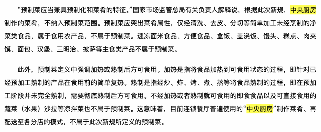 我们得承认一个现实,2024 年这个预制菜新规,在某种程度上,它的一个重要作用就是把连锁餐饮从“预制菜”这个已经被污名化的名词里摘出来。